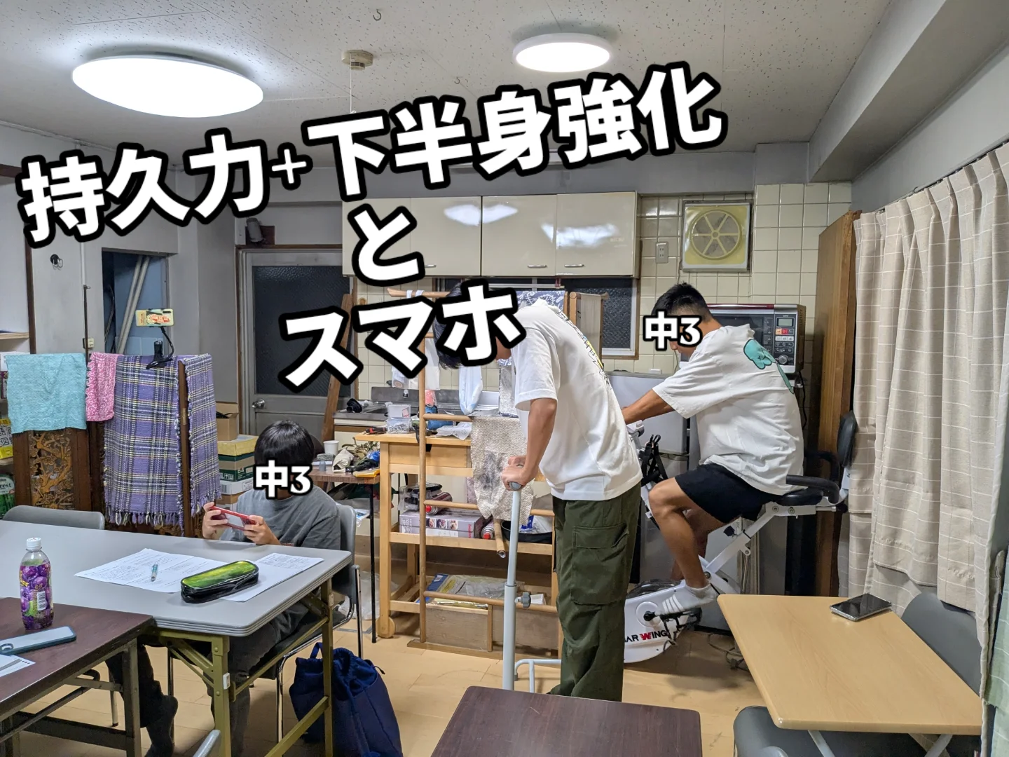 授業は終わってるけど、なにするでもなくダラダラと、エアロバイクこいだりしながら、他愛もない話をしてる中1ふたり。終わってもなんかわからへんけど残ってる、これ、嬉しいもんですよ~🤗居心地