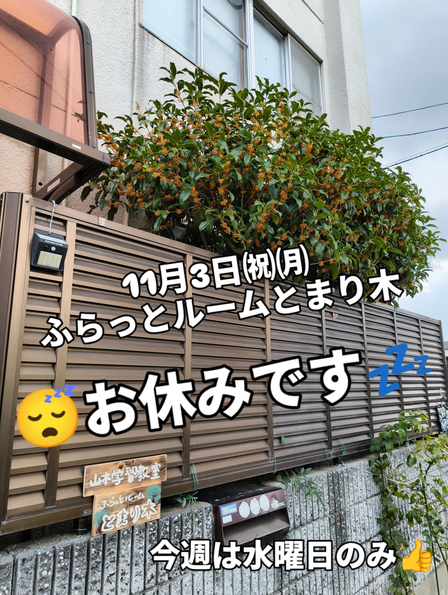 とまり木のお知らせです。9月15㈷㈪は祝日のため、とまり木はお休みです🙇♂️ただ‼️9月17日㈬‼